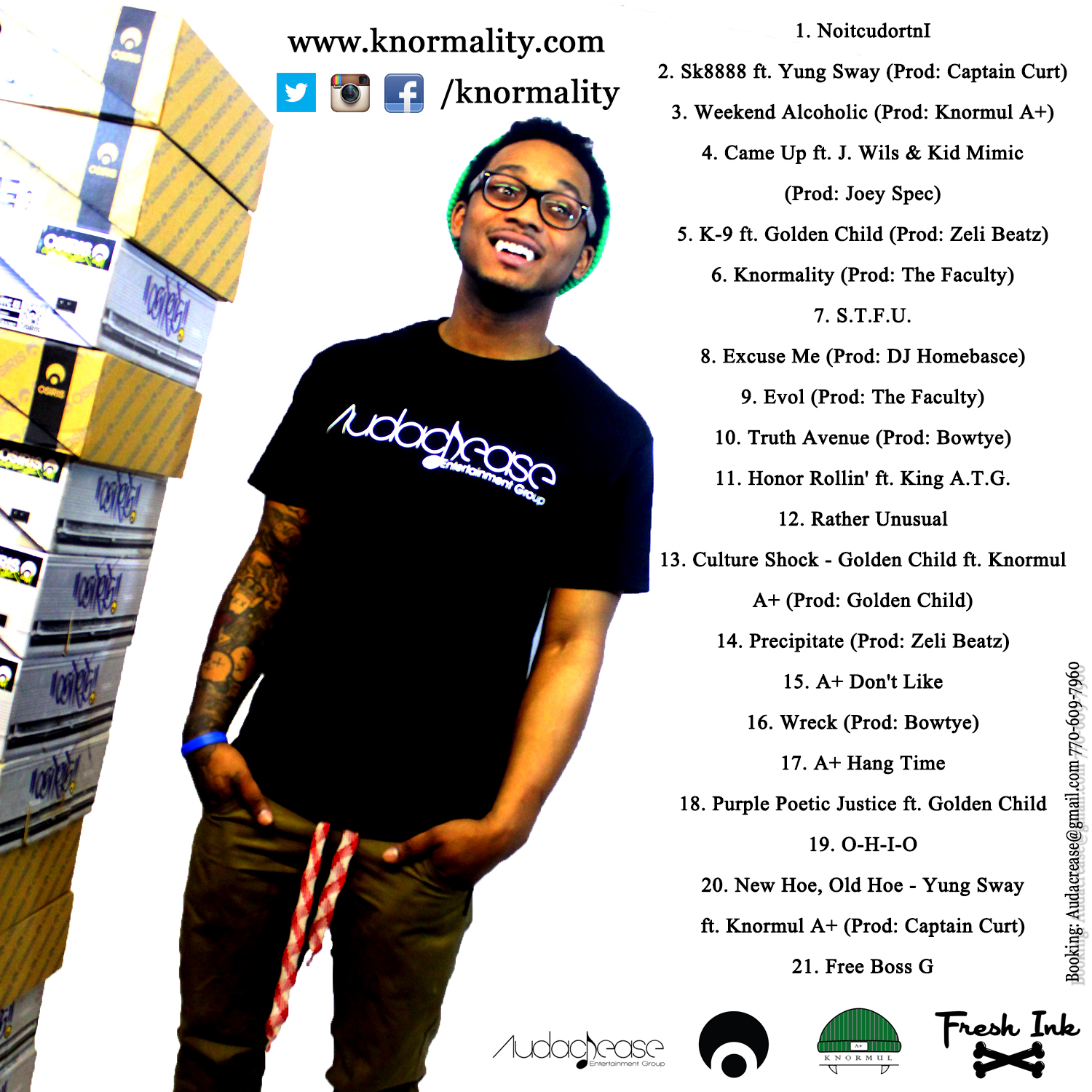 Knormal A+ was born in Cleveland, Ohio, but was raised in South Carolina and now resides in Simpsonville, South Carolina. What started out as writing and poetry turned into lyrical ambition and aspirations to be a recording artist. He will be releasing the visuals from the first single of his mixtape, Weekend Alcoholic, soon.